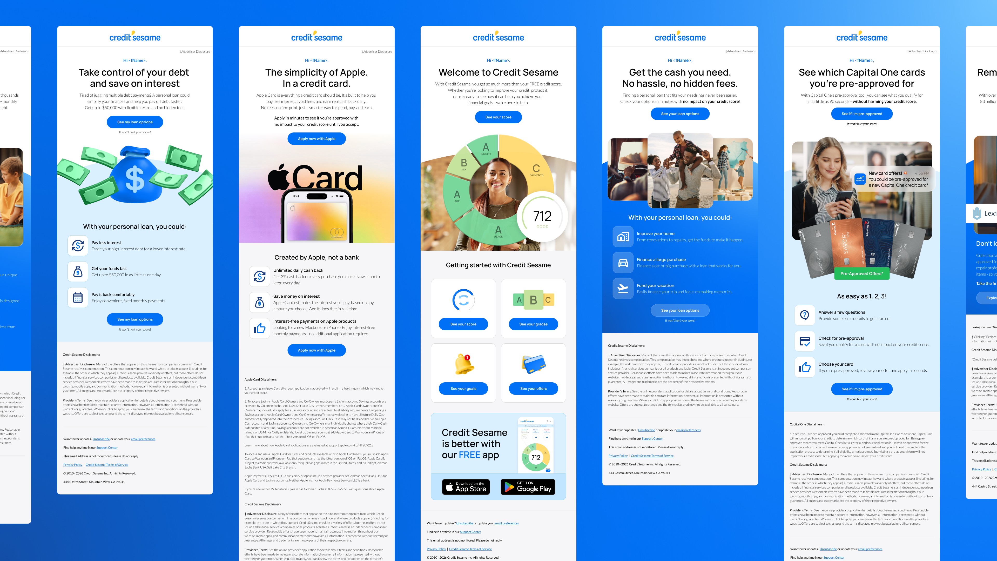 Led brand and creative direction across Credit Sesame’s consumer and product ecosystem, shaping how the brand showed up across acquisition, product, and lifecycle touchpoints. Partnered closely with Product, Marketing, and Growth to translate complex financial tools into clear, scalable experiences that drove user engagement and conversion. The work focused on building cohesive brand systems that could move fast, support new product launches, and perform at scale across channels.