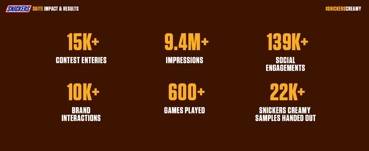 Since it was also the Raptors’ 25th Anniversary, we took the opportunity to celebrate the past and present of both brands. To do this, we gave our fans the chance to win access to the first-ever Snickers Suite. All winners received VIP access to the suite and an exclusive drop box with a retro Raptors Jersey, 2020 Raptors Jersey, Snickers Original, and Snickers Creamy.